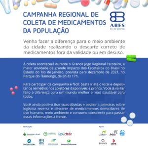 A ABES-Rio e demais entidades promovem a Campanha Regional de Coleta de medicamentos da população, que acontece durante o jogo regional Escoteiro, previsto para o